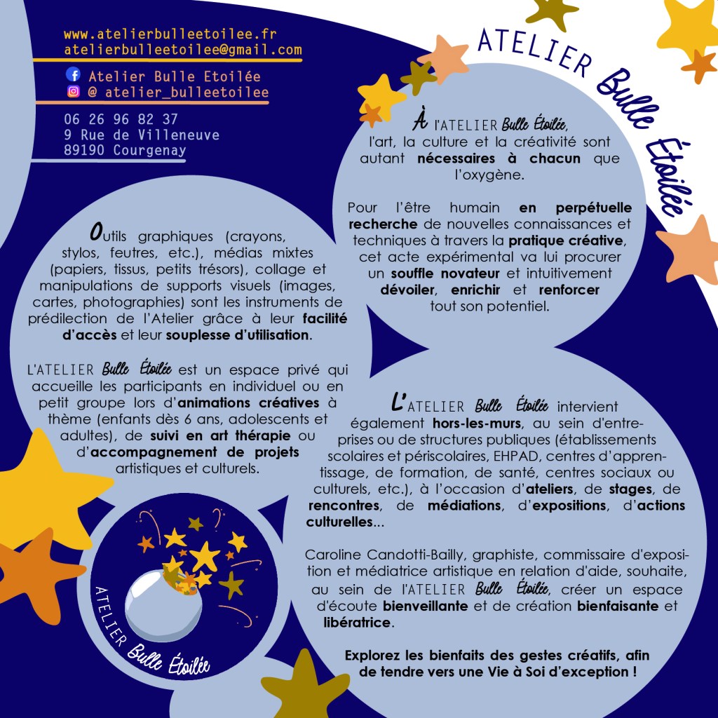 Riche d’expériences uniques et de rencontres fabuleuses, l’Atelier réajuste ses propositions et prestations professionnelles. Le flyer et la carte de visite ont eu besoin d’une petite mise à jour.