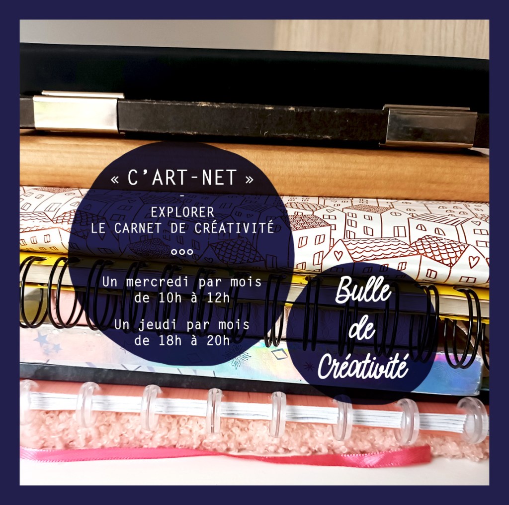 Cet atelier « C’art-net » vous fait explorer le carnet de créativité : un support à la frontière du journal intime et du laboratoire d’expérimentations plastiques et artistiques.