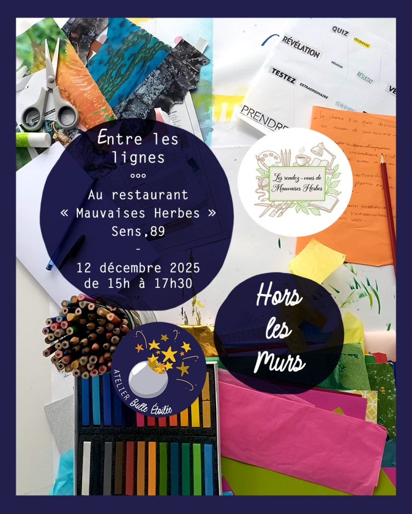 Prochain atelier Hors-les-Murs – Bulle de Créativité : « Entre les lignes », le 12 décembre 2025,
