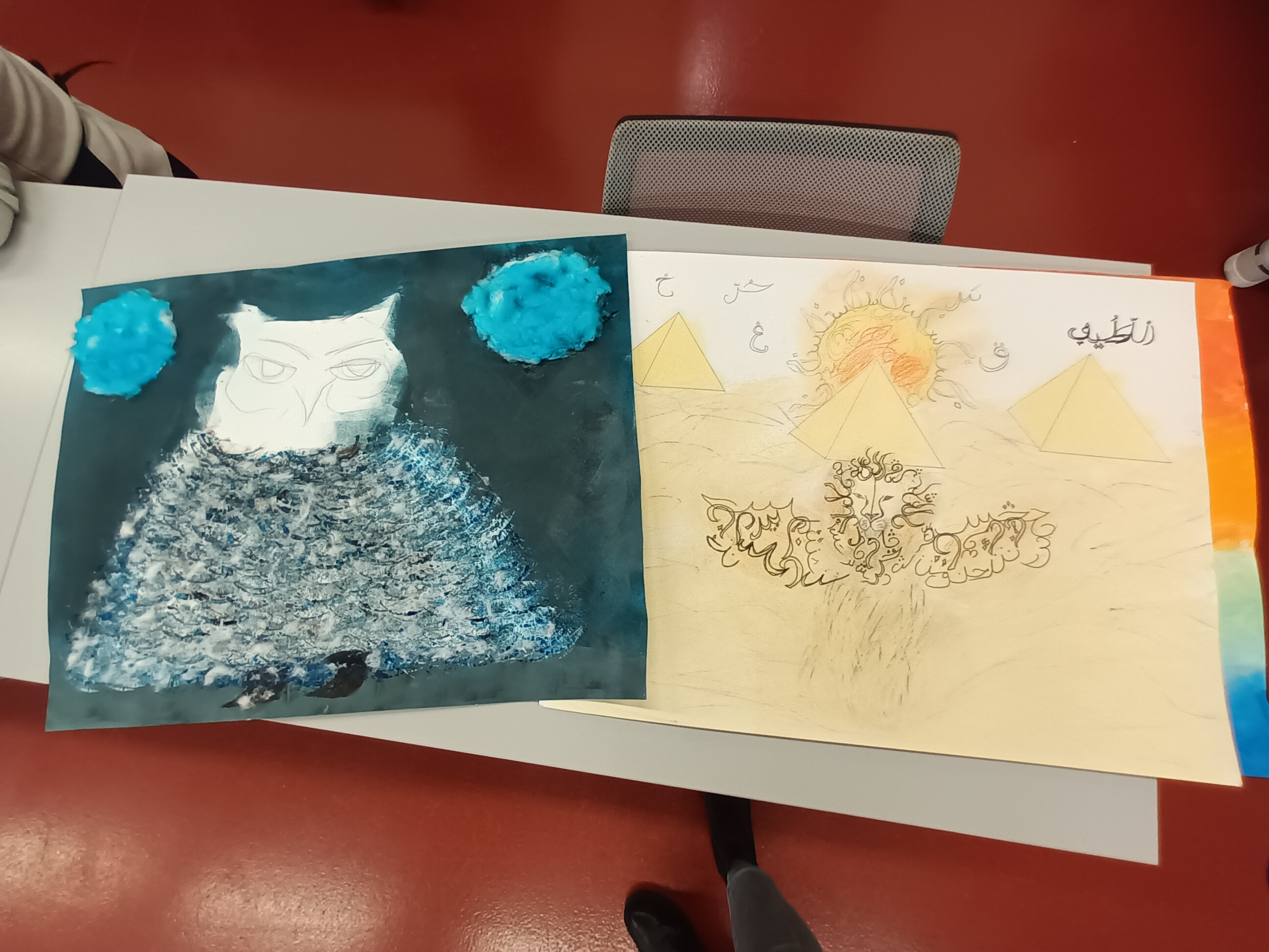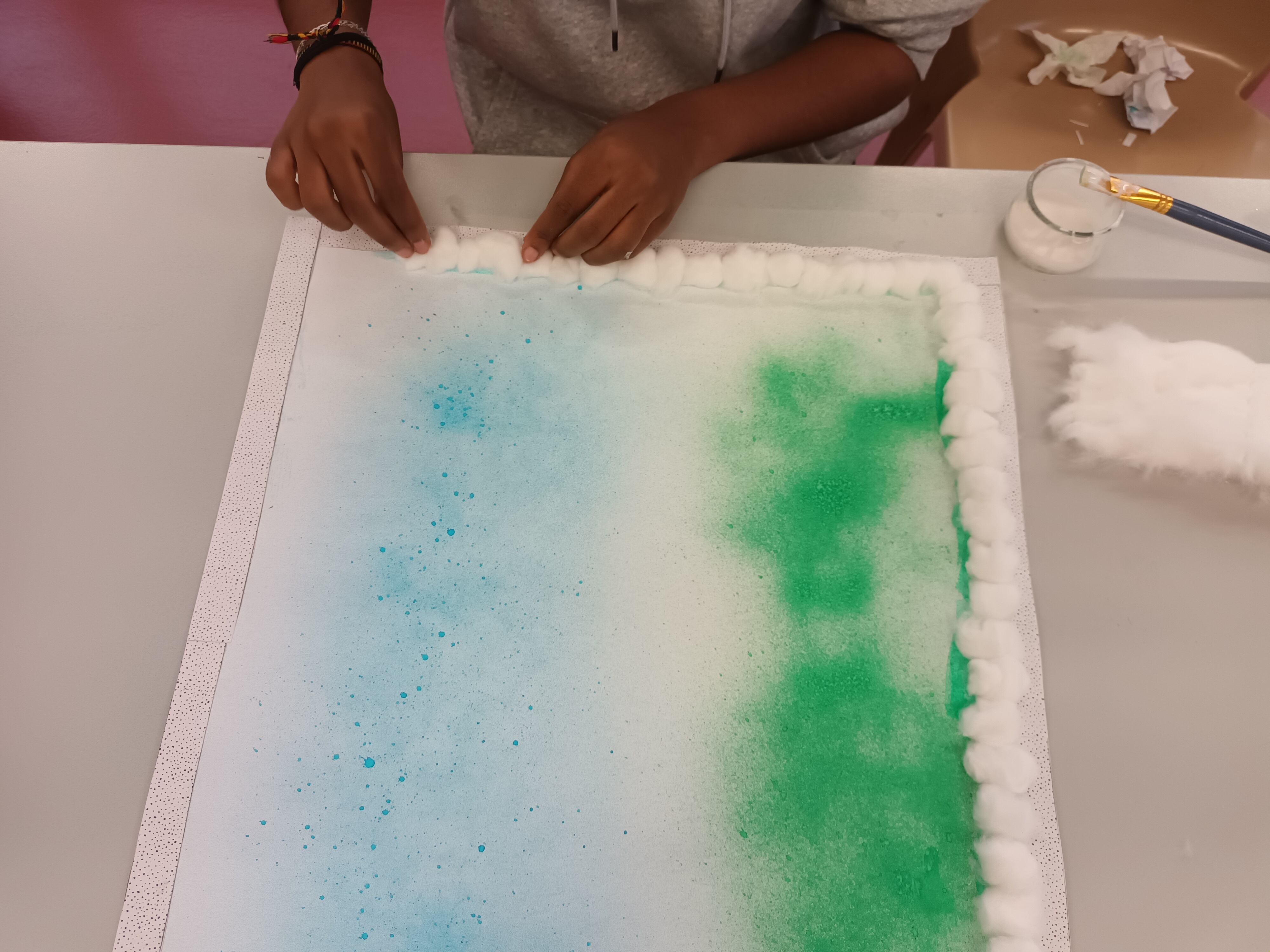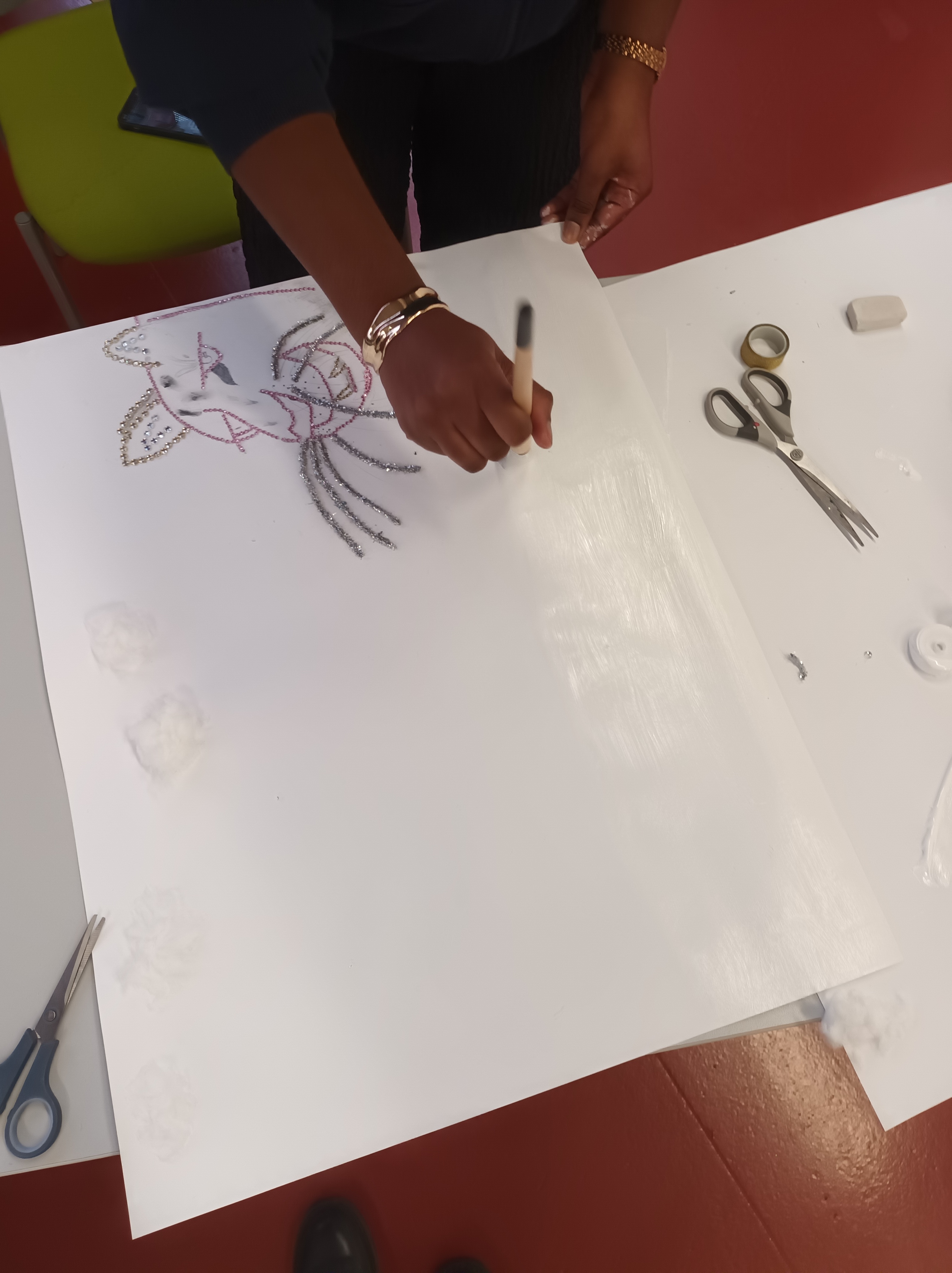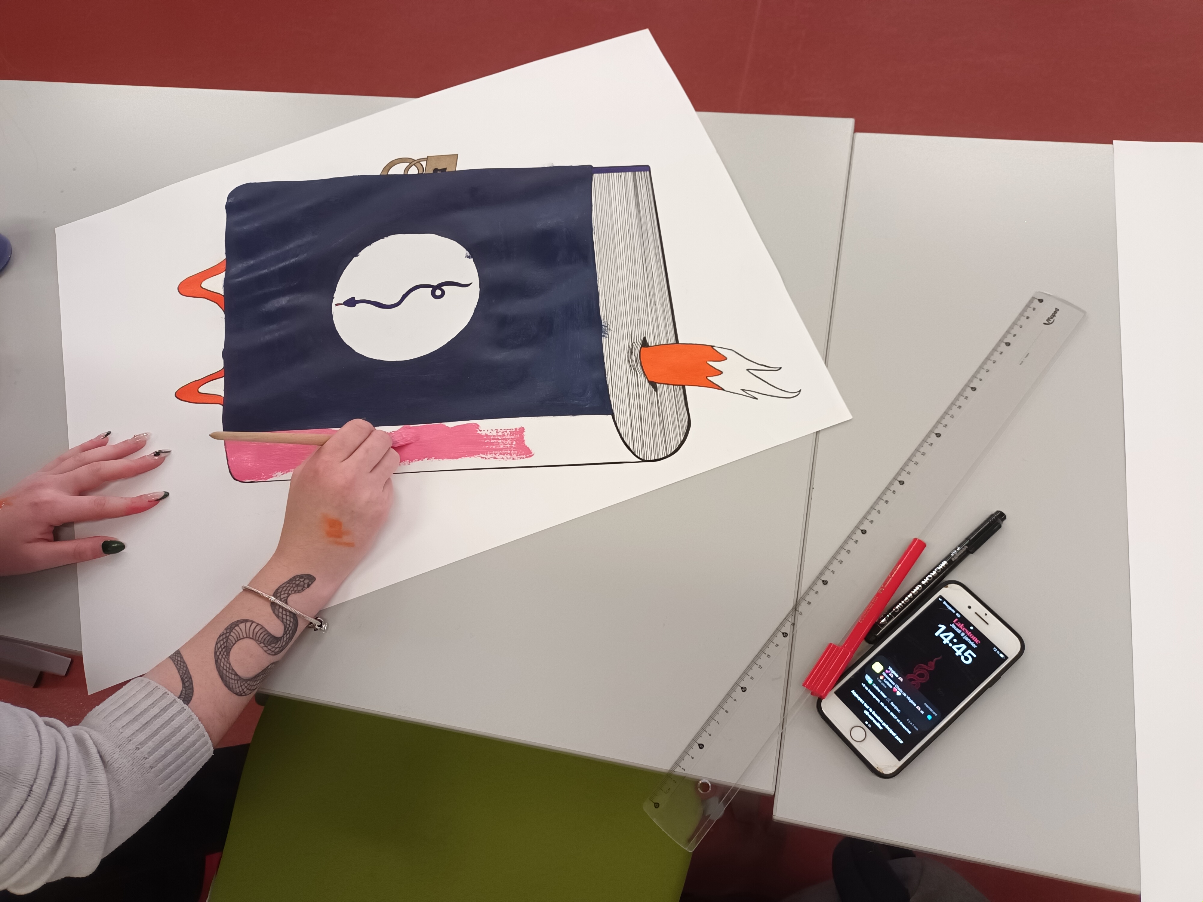 Depuis les réflexions en groupe et en individuel autour de notions abstraites jusque la mise en concret des idées, en passant par des recherches inspirantes et des temps d’expérimentations plastiques, les représentations se sont petit à petit construites. Accidents, idées fulgurantes ou encore difficultés techniques ont rendu le processus créatif loin d’être linéaire ou aisé, mais, doucement, chacun a pu trouver sa solution pour aboutir à un résultat final.