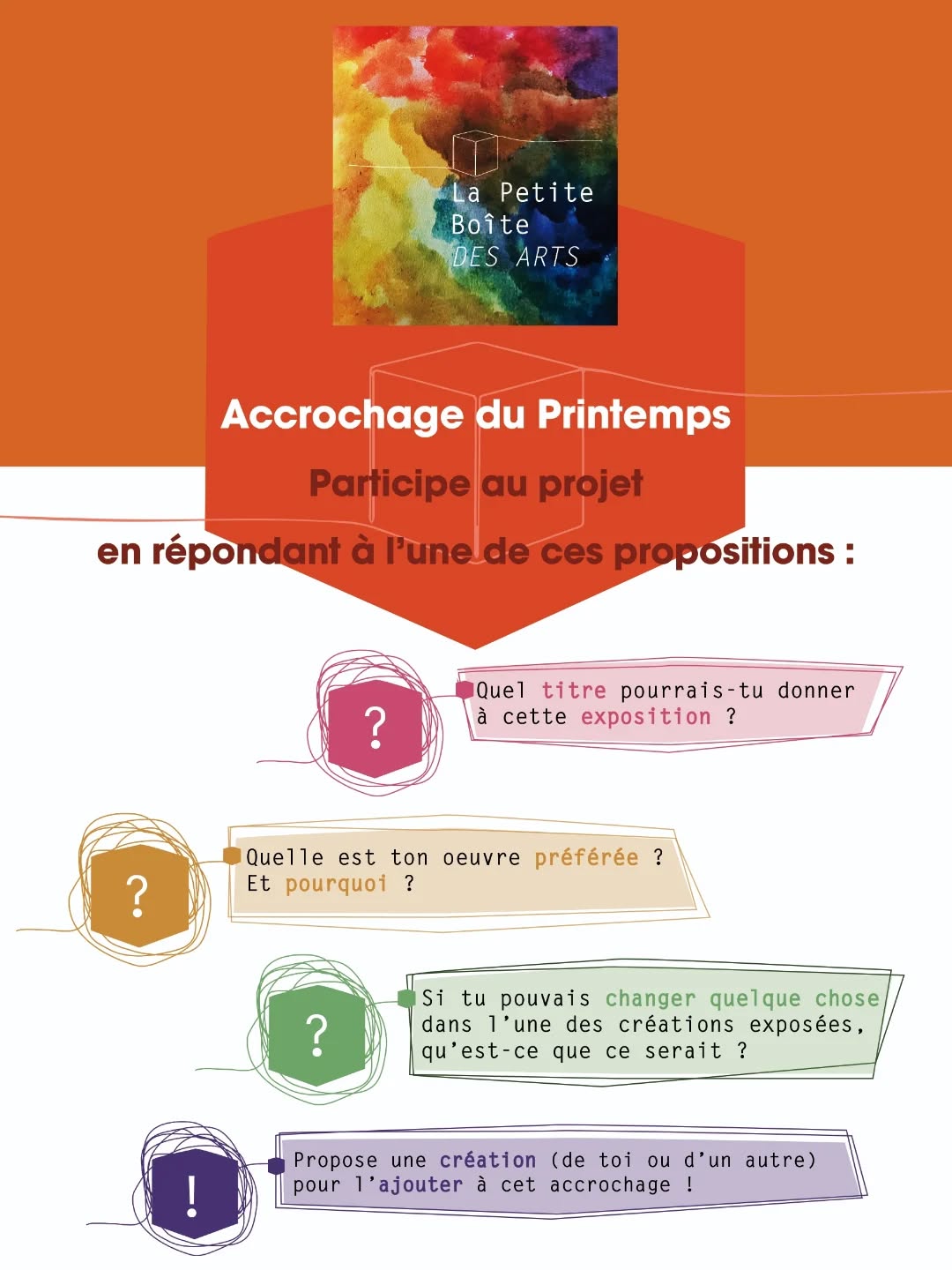 – Propose une création pour enrichir cet accrochage !