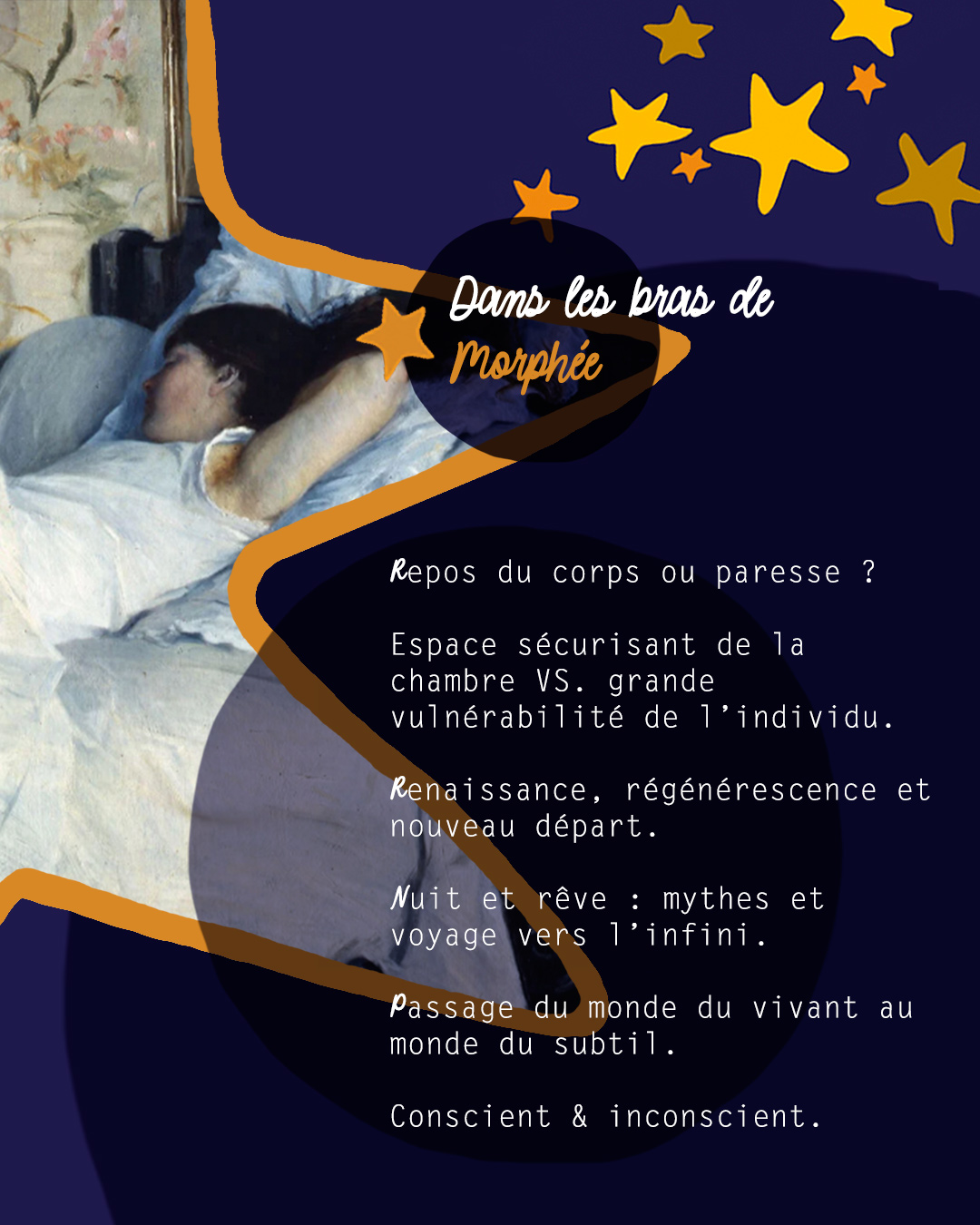 Cette multiplicité dans l’univers du sommeil a considérablement inspiré les artistes et je ne peux que vous inviter à aller rechercher l’œuvre de la nuit ou du repos qui vous inspire le plus.